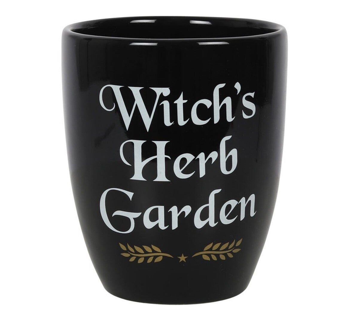 Whether grown from seed or storebought, magical herbs of all varieties will feel right at home with this witchy design. This ceramic plant pot features 'Witch's Herb Garden' text accented by a simple leaf design. Perfect for witches and spellwork or decor